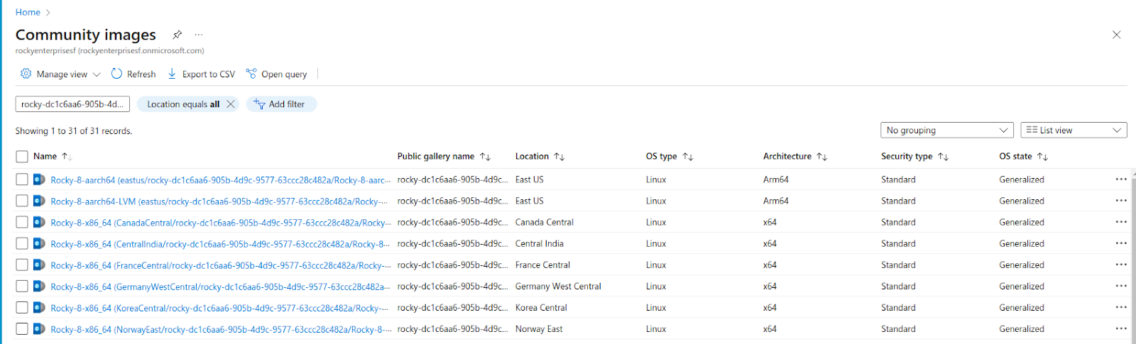 We are grateful for the efforts of the Fedora Cloud SIG and the Rocky Linux Cloud SIG in pushing this change forward, and Microsoft’s commitment to getting the community gallery option up and running.